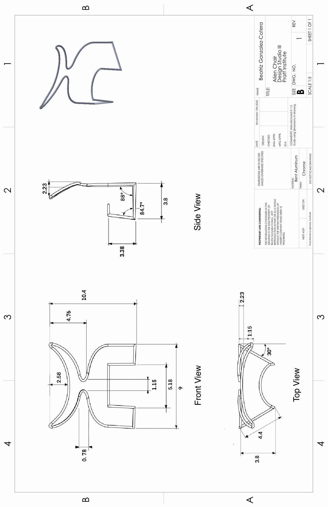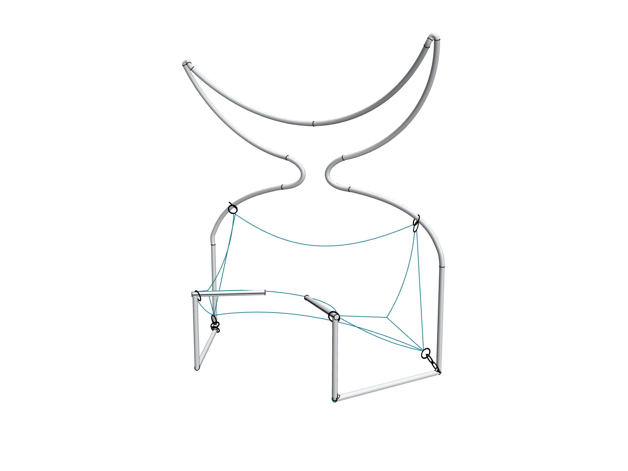ALIEN CHAIR FEATURES A STURDY 1.5” DIAMETER BENT STEEL FRAME WITH CHAIN